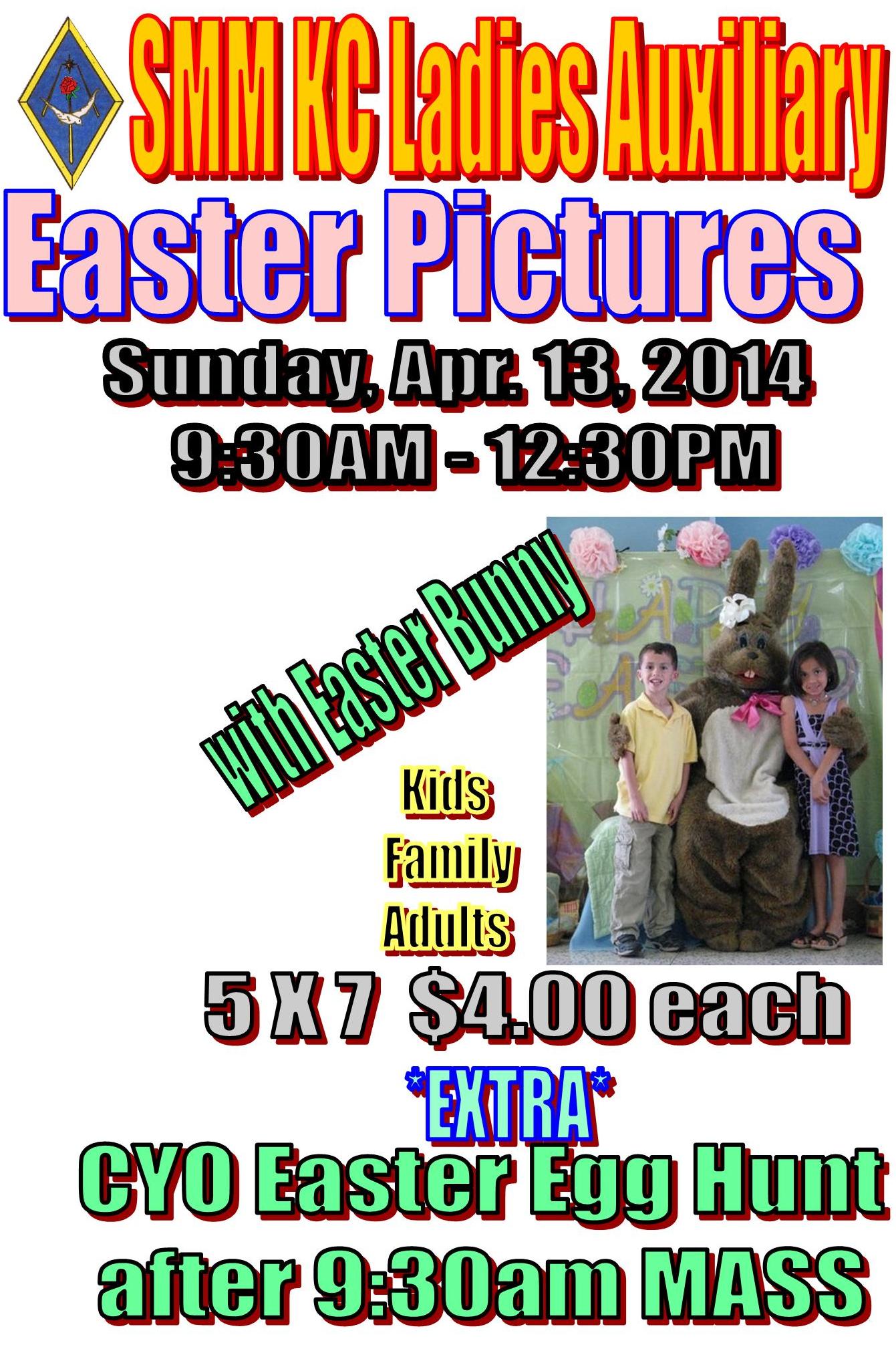 Pictures with the Easter Bunny in conjunction with CYO Easter Egg Hunt 4/13/14 9:30am - 11:30am